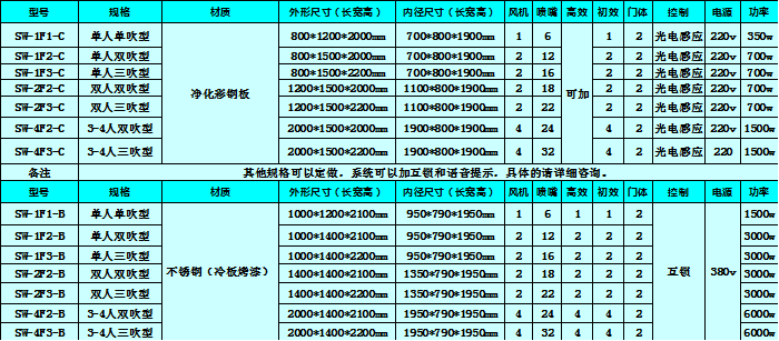 風(fēng)淋室配置說明: